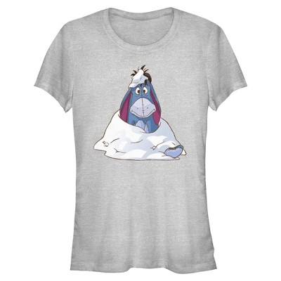- Wear your winter spirit all season long with this girls' t-shirt! Featuring the lovable Eeyore covered in sparkling snow across the front.