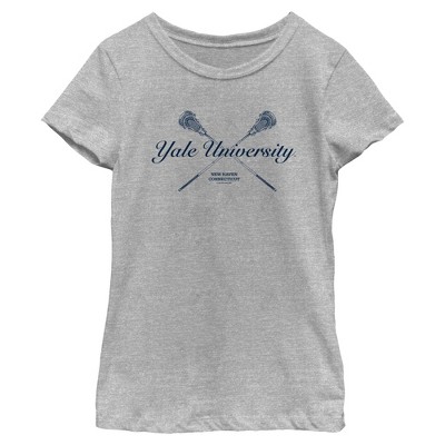 Girls Yale University Football School Logo T Shirt - Athletic Heather - X Small