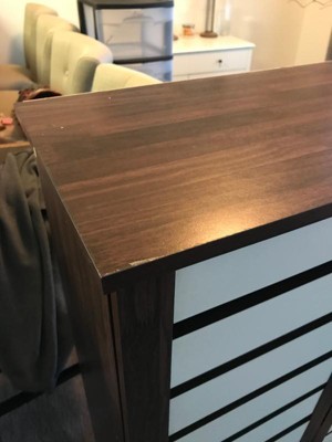 - Two-tone finish in dark oak and white