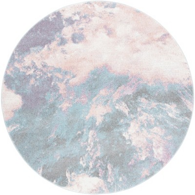 The hypnotic blend of pink and blue hues swirls together in an organic marble-like pattern, infusing your living space with a dynamic and soothing atmosphere. The round shape of this area rug is a perfect centerpiece, offering a sense of balance and harmony that complements its vibrant colors.