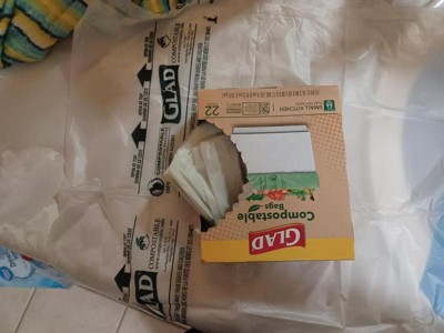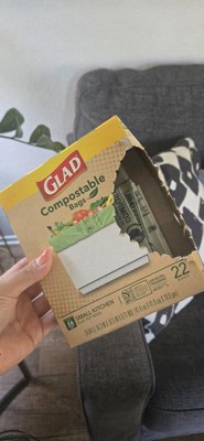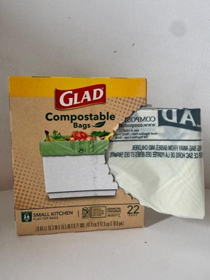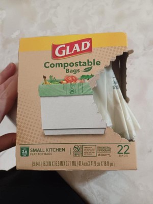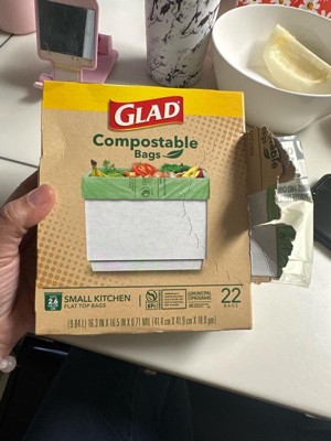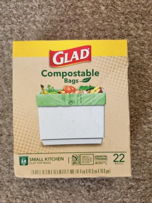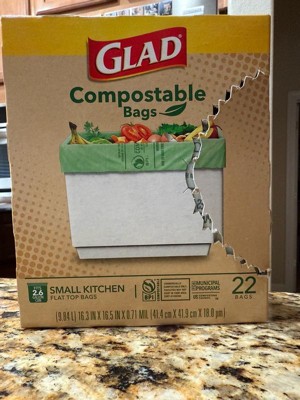 - COMPOSTABLE TRASH BAGS: Twenty-two (22) 2.6-gallon Glad Compostable Small Kitchen Trash Bags to help keep your compost bin clean and fresh