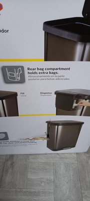 - Convenience of storing extra bags right behind the trash can, dispense easily from the sides without having to move the can