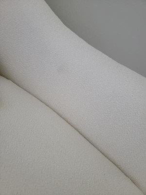 A: The chair is upholstered in 100% polyester cream boucle fabric.