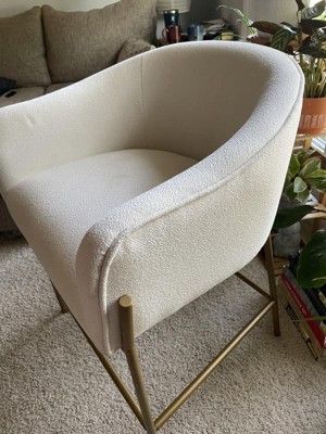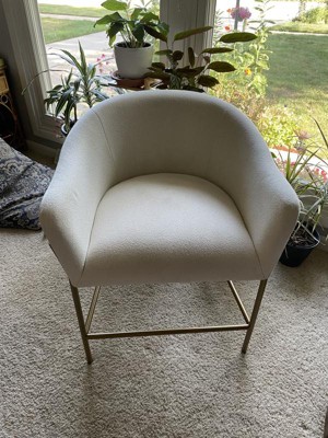 A: The barstool is upholstered in 100% polyester cream boucle fabric.