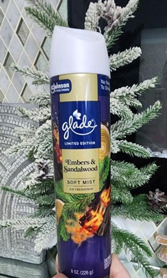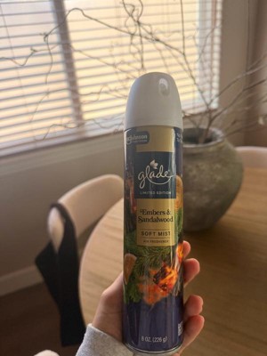 [This review was collected as part of a promotion.] The Glade odor fighting soft mist air freshener room spray in embers & sandlewood is surprisingly a nice scent! It's christmasy without being too overpowering and lasts a while after used.