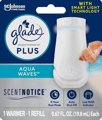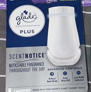 - GLADE® PLUGINS® PLUS: Scented oil warmer with ScentNotice technology for noticeable fragrance through the day