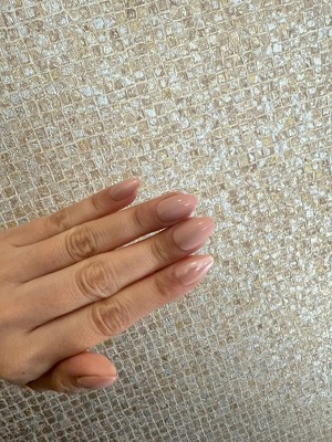 It's a nice shiny, shimmery, peachy nude. If you work with your hands at all, you'll lose the shine within a few days. I don't mind, as I think they start TOO shiny. The photos provided are after 8-10ish days wear, and I'll likely be able to wear them up to a week more if I want to. The color is a bit chippy on the edges because of normal wear doing moderate work. This is all to be expected and I don't mind, because this brand fits my curved nailbeds like a glove.