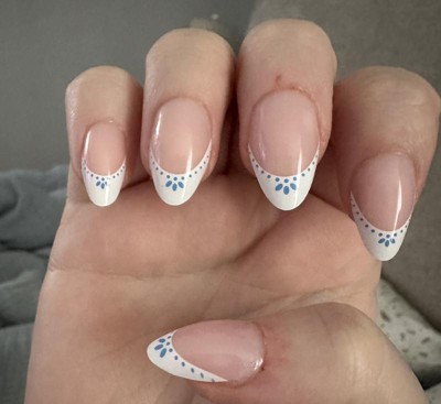 Ready to dive into the serene beauty of our Santorini Press-On Nail Set? Drawing inspiration from the iconic island in the Aegean Sea, this design features dotted blue French tips. Crafted in our beloved short almond shape, these nails promise a touch of Grecian elegance to your everyday look.