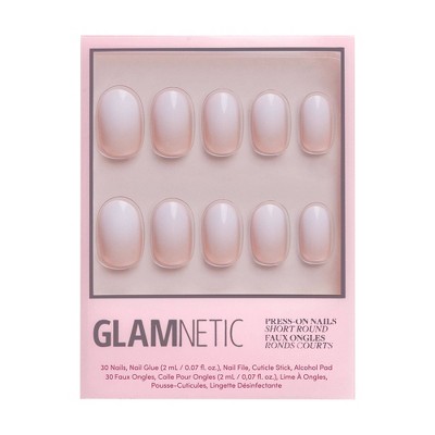 Pure and simple, timeless style at your fingertips. Glamnetic's Angelic Touch nail set pairs a nude velvet base with classic white French tips, creating a short oval mani that feels both elegant and effortlessly fresh.