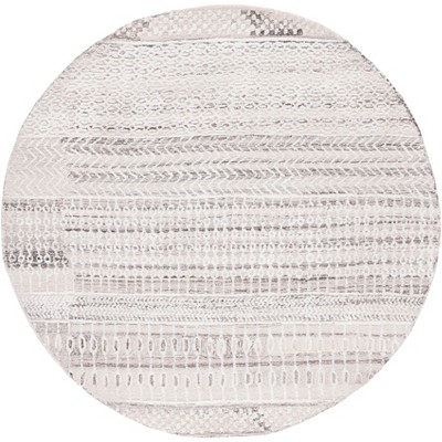 This rug's round silhouette makes it a versatile choice for a variety of spaces, from living rooms to bedrooms, ensuring a harmonious fit with any decor style. The ivory color palette serves as a neutral backdrop, allowing the detailed chevron texture to stand out, granting a subtle yet impactful design element.