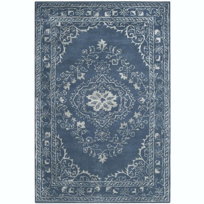 Invest in the lasting beauty and artisanal tradition of this grey/blue hand-tufted wool rug, a statement piece that encapsulates both luxury and cultural heritage.