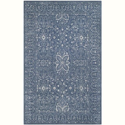 Elevate your living space with the exquisite charm of our hand-tufted wool area rug, meticulously crafted in India. This 5' X 8' medium rectangle rug showcases a sophisticated grey and blue color palette that effortlessly blends with any decor style. The intricate, traditional patterns present on the rug add a timeless elegance to your home, while the plush wool construction ensures lasting comfort and durability.