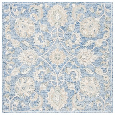 Introduce timeless elegance and artistic craftsmanship into your living space with this exquisite 6' X 6' Square area rug. Colored in a harmonious blend of blue and ivory, this piece will seamlessly blend with a variety of interior designs while adding a touch of sophistication. The rug showcases a distinctive pattern that features an intricate series of diamond motifs, bordered by complementary decorative designs, resonating with both traditional charm and contemporary chic.