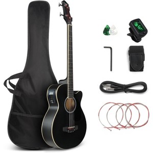 GLARRY Full Size Acoustic Electric Bass Guitar Beginner Kit w/Inbuilt Tuner, Bag, Strap, Picks, Strings