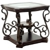 Glass Coffee Table End Table Cocktail Table Side Table Accent Table with Serpentine & Scrolling Flower Metal Legs, Brown-ModernLuxe
