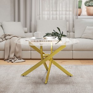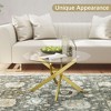 Glass Coffee Table, Round Coffee Table with Geometric Metal Frame, Modern Minimalist Coffee Table for Decoration