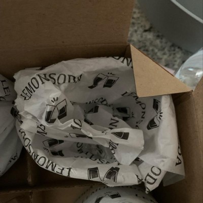 No padding in the package whatsoever. Just boxes of glasses shoved in a shipping box. One of the glasses is broken. There's a claim in product description on Target website that it's lead free. Nowhere on the glass box itself does it say so. There's also a warning not to put it in microwave, which is concerning, since there's no paint on the mug. Does it have lead? Can it get so hot as to cause injuries? Who knows. I'm not taking this gamble. It's a definitely a return for me.