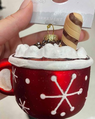 Glass Hot Cocoa Mug Christmas Tree Ornament Red - Wondershop™: Whipped Cream Detail, Indoor Decoration