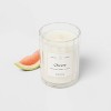 My daughter and I fought over this one because it smells so great lol. The scent is birthday cake and cheery raspberry. It's sweet but in a good way and the hot throw fills a room. The glass jar is sleek and matches my daughter's room decore.