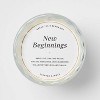 New Beginnings is a clean, romantic scent. Slightly soapy, but in an elegant way. The scent is light, so it does develop subtly. I can tell this candle is going to last for a long time, it burns even and slow. The subtle scent and slow burn time compliment the strength of scent it gives off over time. Would definitely recommend and possibly will purchase again.