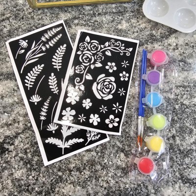 - Includes paintbrushes, stencils, acrylic paint pots, instruction sheet and more