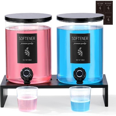 Glass Laundry Detergent Dispenser, 128 oz / 3.5L with Plastic Spigot for Laundry Room Organization, Fabric Softener Dispenser Black, 1 Pack
