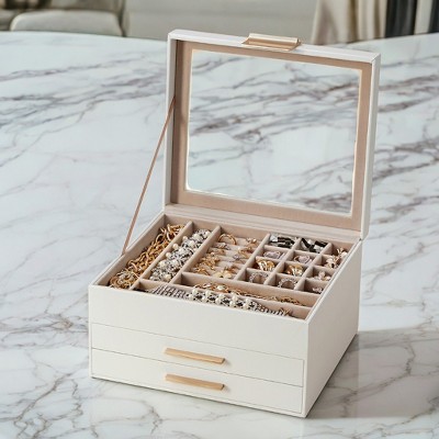 - [Storage, 3 Layers] Keep all your jewelry organized in this jewelry box—small pieces of jewelry go in the various slots of the top layer, and big jewelry goes in the bottom 2 drawers