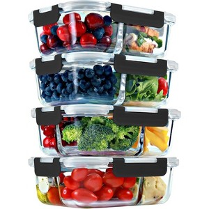 Glass Meal Prep Containers, 2 & 3 Compartments with Airtight Lids, 32 oz