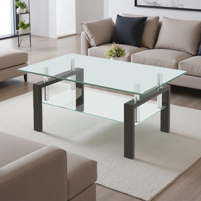 Tempered Clear Glass Coffee Table, 2-Layers Coffee Table Living Room Center Table.