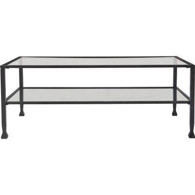 The convenient pairing of the Zamir Collection¡¯s cocktail and two end tables provides an easy addition to your home¡¯s living room. The elegant contrast of the black tempered glass tabletops, gold-hued banding, and metal legs creates a modern look for your home¡¯s living room. The rectangular shape of the cocktail table¡¯s top and the square top of the two end tables presents a classic profile, offering ample tabletop display space.