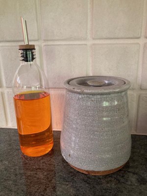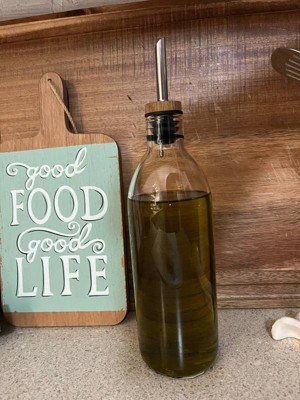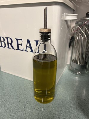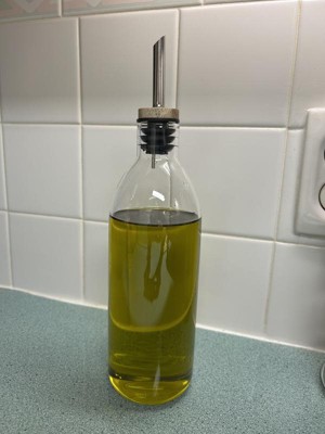 Glass Olive Oil Bottle - Figmint™: Clear Glass Oil Dispenser with Stainless Steel & Silicone Lid, 20.5 oz Capacity