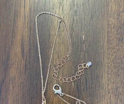The gold plating on the necklace has worn off over time. Now it looks super dark like bronze.