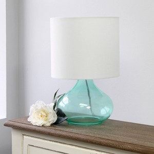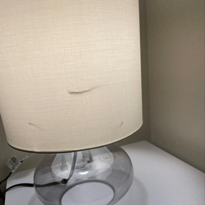 Illuminate your living space with this simple yet stylish glass 13.75" table lamp. The clear glass raindrop shaped base and gray fabric drum shade is the perfect blend of charm to give your home a contemporary and modern upgrade. Perfect for living rooms, bedrooms, kids and teens, college dorms, apartments, nurseries, or offices.