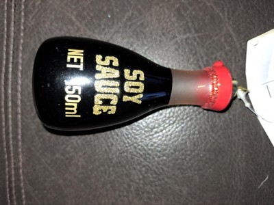 A cute fun and nice looking ornament for foodies or soy sauce lovers! My hubby puts this on everything, so it's a fun way to honor what he likes. The printing is clean and the glitter is exactly where it's supposed to be. It's about a third the size of an actual soy sauce dispenser bottle.