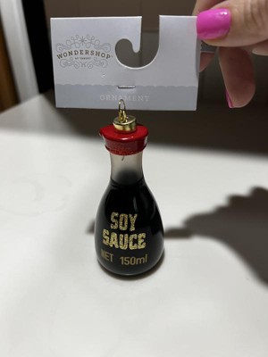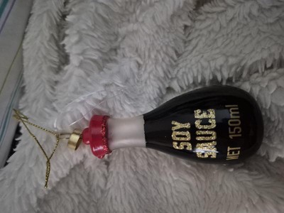 Glass Soy Sauce Bottle Christmas Tree Ornament - Wonder shop is so cute. It make a great Christmas ornament. The Soy Sauce is very significant to myself and my husband. When we were dating we used to go try different Chinese restaurants. So we not only got the chance to know each other. But we also learned where the best Chinese food was at. This little Soy Sauce Bottle is a reminder of that time. It's made of Glass. Looks very realistic. And is the cutest little Soy Sauce Bottle. It's makes a great little gift for those Chinese food aficionado's.