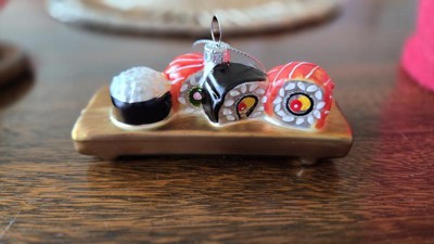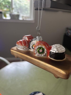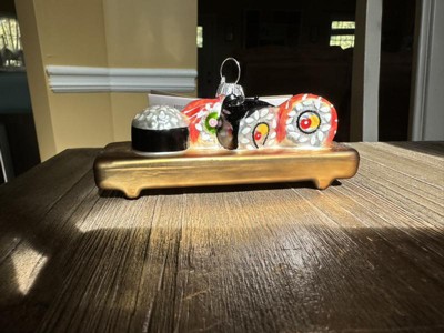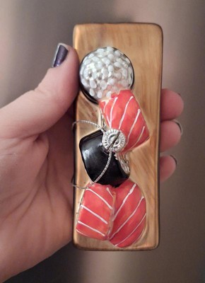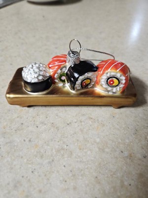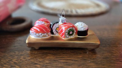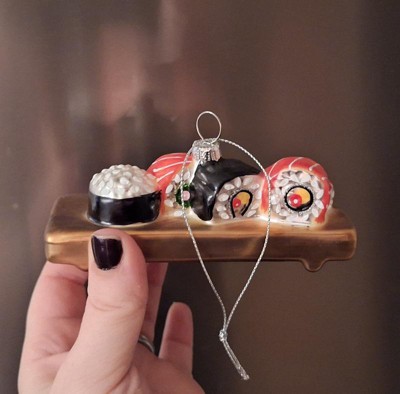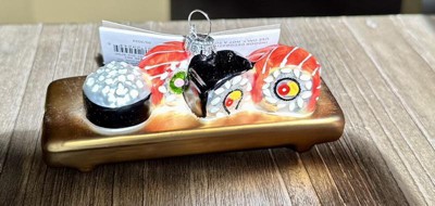 Target Christmas design time did it again with a perfect sushi assortment ornament. Lots of details that are well done-the wood grain in the tray to the white albumin on the salmon, very impressive for decor at this price point. If you have a sushi lover in your life or if you love sushi, add this to your tree!