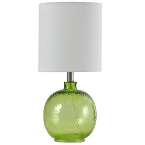 With its green finish, the Glass Table Lamp Green from the Signature Collection by StyleCraft Home Collection provides a calming touch to the family room, study or any other room you believe it will look nice in. The glass lamp comes in a green seeded glass finish and has a white shade in a drum shape. This piece exemplifies superior product design and great styling at an unbeatable price. This will pair well with contemporary styling and is sure to be a conversation piece. Regardless if you put it in the bedroom or family room, this lamp stands out. Lamp is suitable for residential use in a dry location. This table lamp is UL listed in compliance with the nationally recognized safety standards. Due to lighting and monitor differences, actual colors and finishes may vary slightly from what appears online