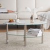 Introductions: This modern oval coffee table is suitable for apartments, homes, or offices. The 3-layer personality storage design can well accommodate a variety of accessories or things, such as your laptop, magazines, books, remote control, or other things. Table legs adopt steel tubes, which are sturdy and durable in use. The smooth surface makes it easier for you to clean. The stains on the table can be cleaned quickly, which reduces your worry.