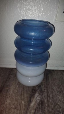 Glass Vase - Coastal Ombre Decorative Flower Holder for Home, Office, Bedroom & Living Room - Modern Ripple Design, Durable Handmade Glass - 12" Blue