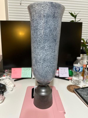 Glass Vase with Metal Base - Coastal Style Blue Decorative Vase for Home, Office, Bedroom & Living Room - Elegant Accent Piece - 16" Blue