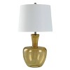 This Taupe Table Lamp from StyleCraft features a gourd-shaped glass base formed from colored glass to lend it a bold vintage appeal. It's topped with a tapered white hardback shade that enhances its presence and gives it a timeless character in bedrooms, living rooms, and more. This piece exemplifies superior product design and great styling at an unbeatable price. It will pair well with nautical and eccentric styling and is sure to be a conversation piece. Regardless if you put it in the bedroom or family room, this lamp stands out. Suitable for residential use in a dry location.