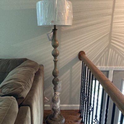 Overall nice lamp. The color leans grayish brown. Nice height. Minor imperfection in the pole where the two pieces screw together and I did have to make an (easy) adjustment (with pliers) to the little piece the shade rests on as it was slightly crooked.