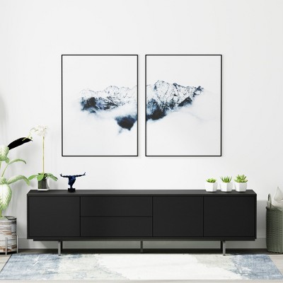 The Atlas TV Console demonstrate that classic, high-end design, does not require a high-end price tag. Designed specifically to fill a void in the furniture market, the Atlas collection offers durable, functional, and beautifully clean lines at an afforable price point. Constructed from furniture-grade engineered hardwood and finished with a water-resistant and stain resistant melamine finish designed to withstand everyday use with ease. With unmatched finish options the Atlas 78" TV Console accommodates most TVs with screens upwards of 90 inches while providing plenty of storage space for your AV equipment, gaming devices, and media. Despite its affordable price tag, the Atlas is built strong. A steel base anchors the piece while the cabinet above easily supports 175lbs of weight on its top. Strategically located cable management allows you to easily house and use your AV equipment. Shipped in two lab certified ISTA 6A packaging (this ensures your furniture arrives in pristine condition), assembly takes about an hour for one or two people.