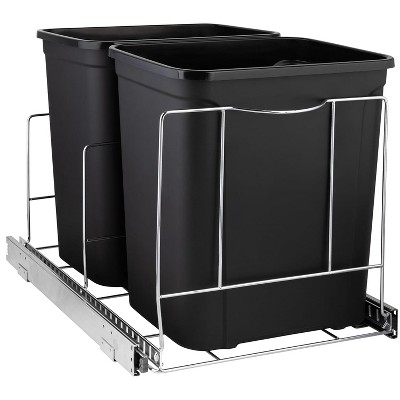 - This cleverly designed set of plastic trash cans features a chrome-plated, easy-mount, full-extension, ball-bearing sliding steel base for discreet garbage and recycling