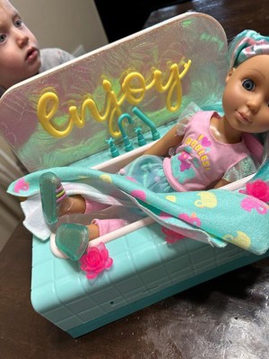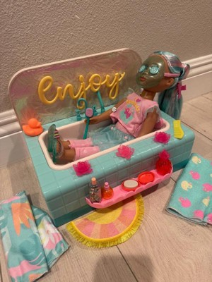 [This review was collected as part of a promotion.] I received this product from Influenster in exchange for my honest review Just unboxed this doll + spa-bath set and we are so here for it. She arrives in a cute bath-outfit, pastel bathtub and tons of teeny accessories (rubber ducky, towel, face-mask, bath shelf and more) — talk about luxury doll-life, made my daughters super happy