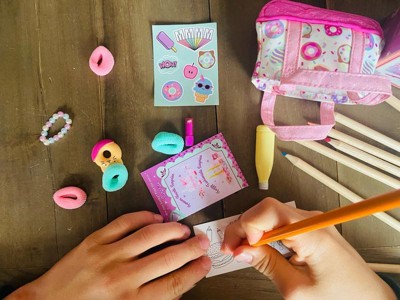 [This review was collected as part of a promotion.] I really like this surprise. We got a donut purse, with hairband, stickers, mini coloriage, and more. It’s cute and very great quality. The surprise is good price for all we got in it. And the recyclable items it s a plus.