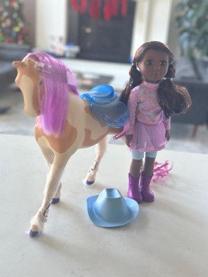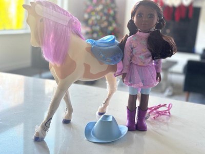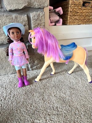 [This review was collected as part of a promotion.] My niece was so excited to play with this gorgeous little cowgirl she loved the horse and the darling cowgirl. I love the purple hair and how big the toys are! It’s definitely going to be hours of fun!!