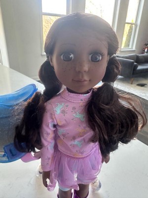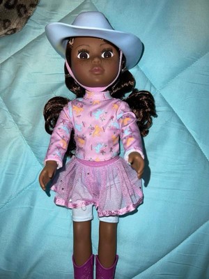 [This review was collected as part of a promotion.] My daughter was so excited when this showed up! It’s super cute and looks like good quality. The hat had some discoloration but it didn’t effect it at all. It’s smaller than the American girl dolls which I was bummed about at first but honestly it’s kind of nice cause it takes up less space. I don’t have a target in my town so I would have to order additional stuff offline if I wanted. It would be easier if it was carried at wal mart But I would totally buy more things for this