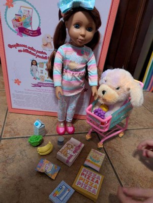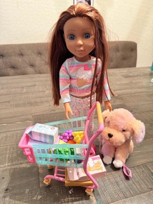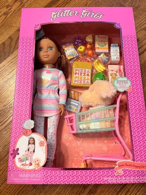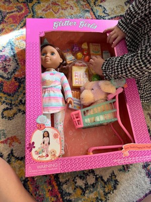 Glitter Girls Fashion Doll with Pup & Play Food Emmie, Biscuit & Shopping Cart Playset: 28-Piece Doll Playset