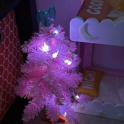What a perfect pink tree! Love that it comes with lights, tree topper, ornaments, 2 presents and a beautiful trunk to store them in. Will keep it up all year round in my dollhouse. Love it!